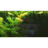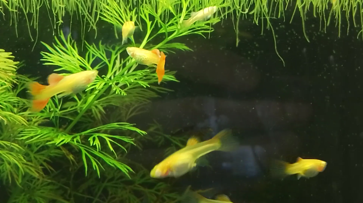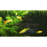 Guppies are often kept in community aquariums since they are so peaceful. They do however prefer to be kept in species aquariums, since other fish occasionally assault them by nipping their long fins. When several Guppies are kept together they will form a beautiful school.